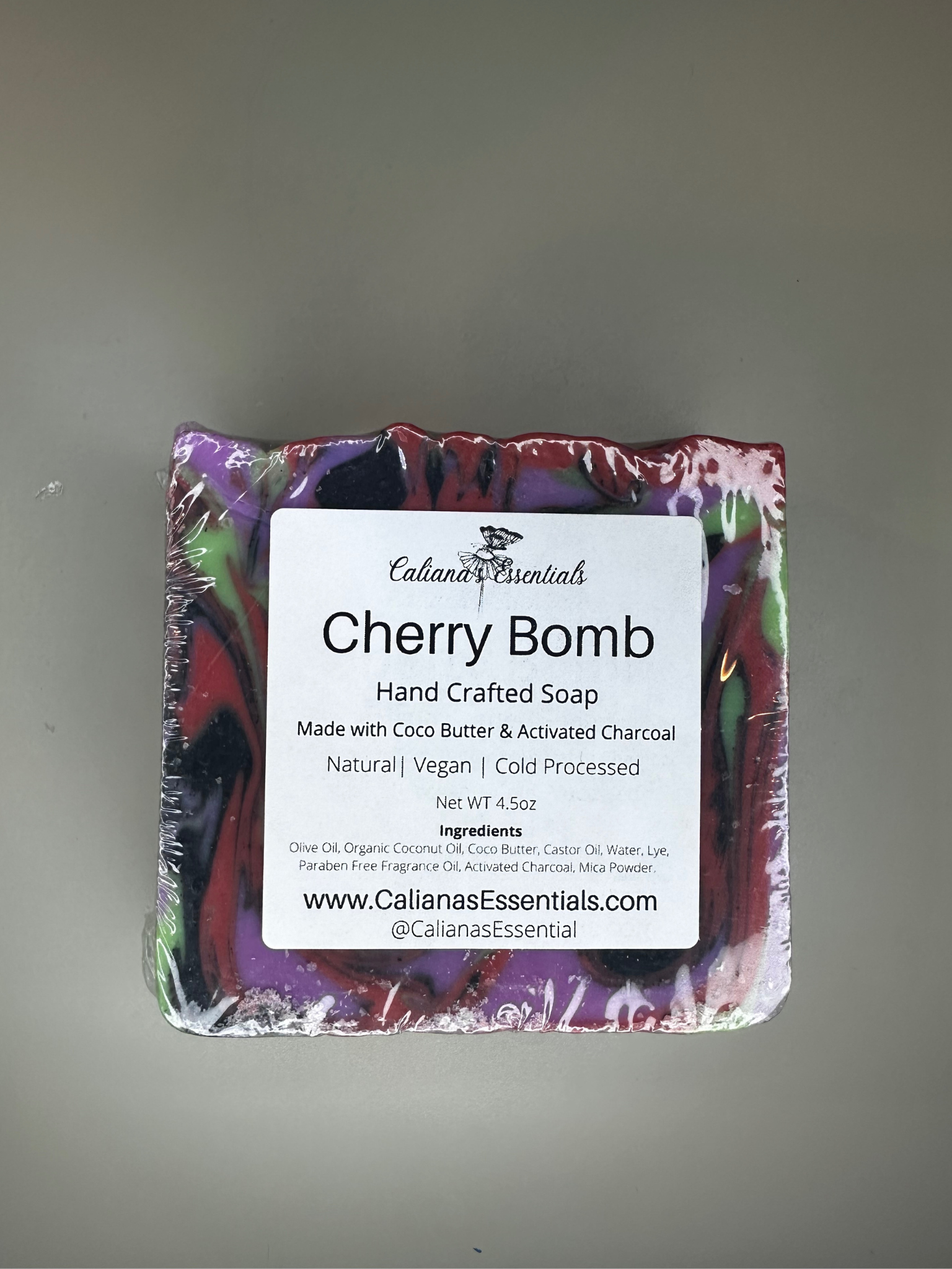 π£ Bold Clean, Sweet Edge β Cherry Bomb Handcrafted Soap with Cocoa Butter & Activated Charcoal